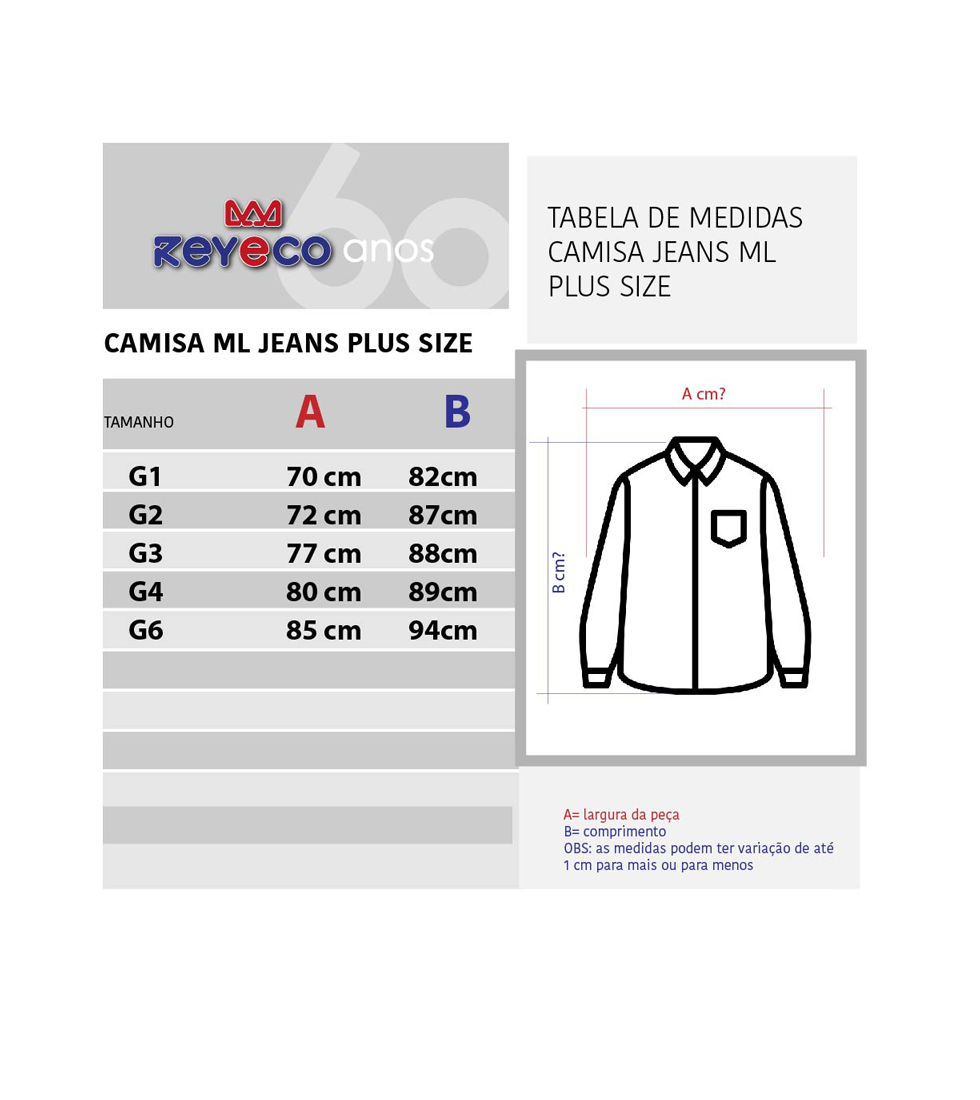 Camisa Jeans manga longa Plus Size. Um clássico nas cores Azul/Stone ou Preta/Black, com 2 bolsos. 100% algodão. Sucesso garantido!!